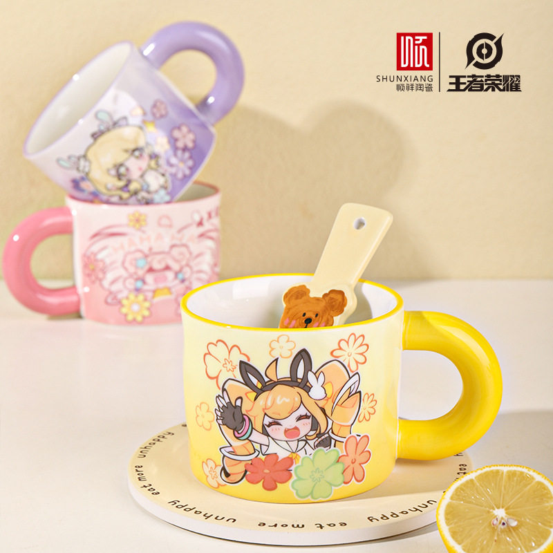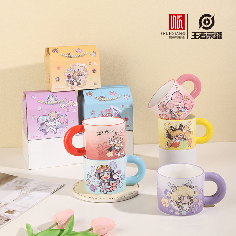 王者荣耀正版顺祥缤纷乐开花情侣卡通萌趣陶瓷水杯周边游戏二次元
