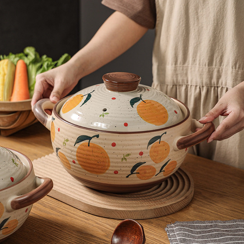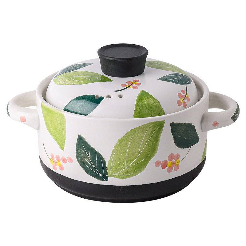 日式手绘花卉炖锅煲汤家用双耳陶瓷燃气煲仔饭砂锅单盖耐高温