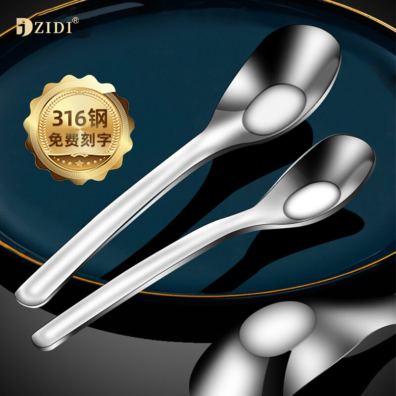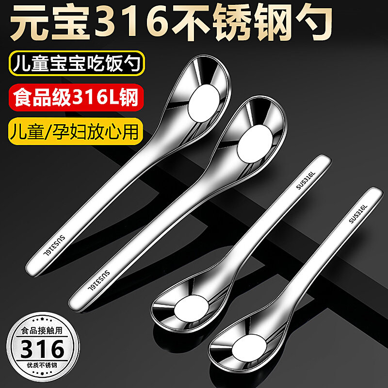 食品级316不锈钢勺子家用儿童勺宝宝吃饭喝汤元宝勺调羹小勺子