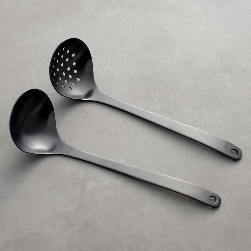 黑色柳叶日式304不锈钢长柄汤壳漏勺火锅喝汤勺子大号调羹盛粥