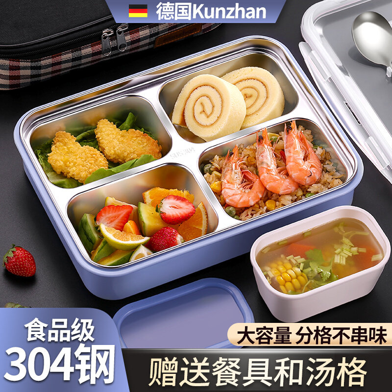 德国kunzhan饭盒上班族学生便当盒不锈钢餐盘带餐具分隔型304小格