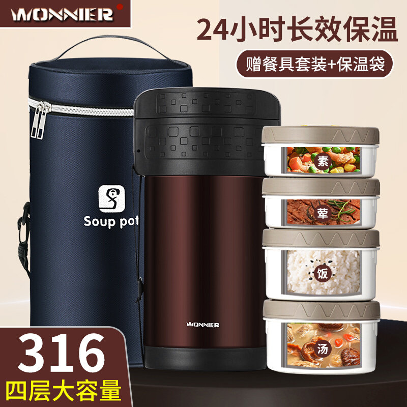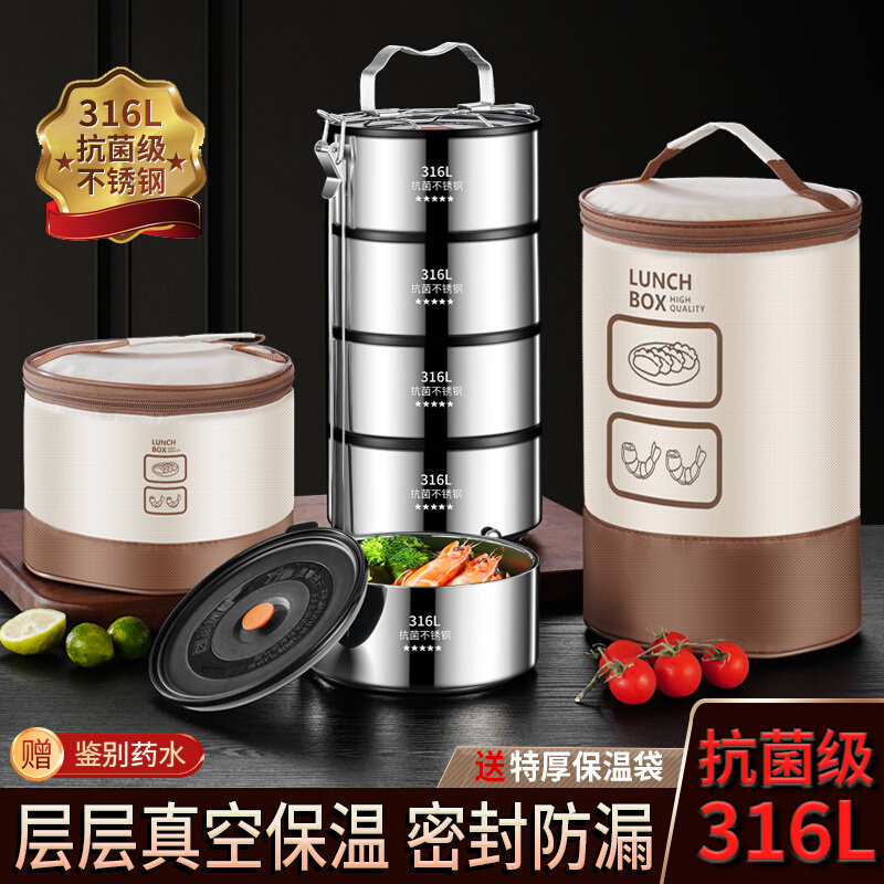 316L不锈钢真空饭盒多层提锅保温桶便当盒三四层成人防溢餐食品级