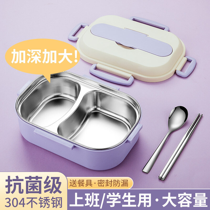 304不锈钢饭盒小学生专用便当盒保温分隔儿童两格带盖分格午餐盒