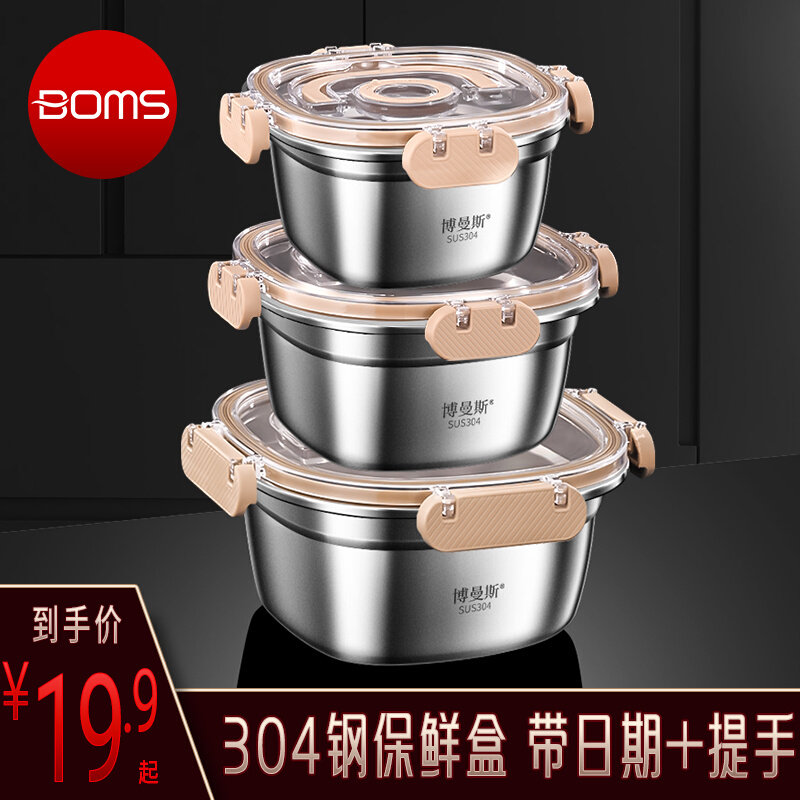 食品级304不锈钢保鲜盒冰箱专用密封收纳水果便当盒野餐外带饭盒