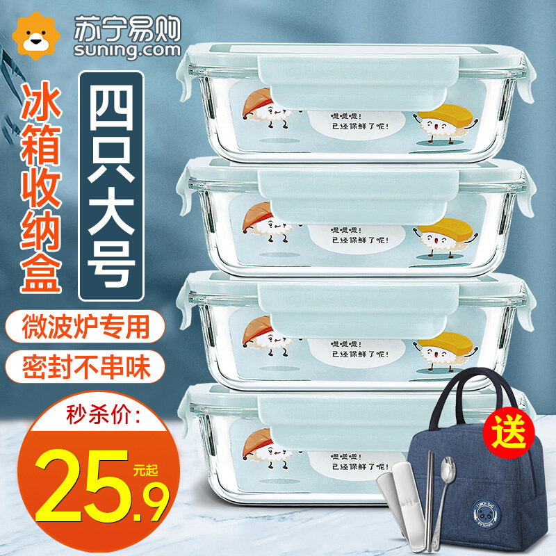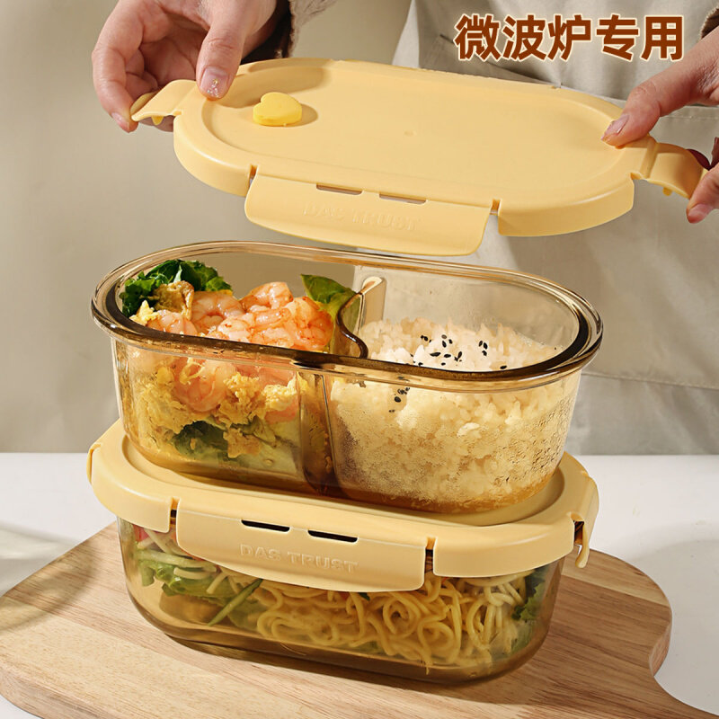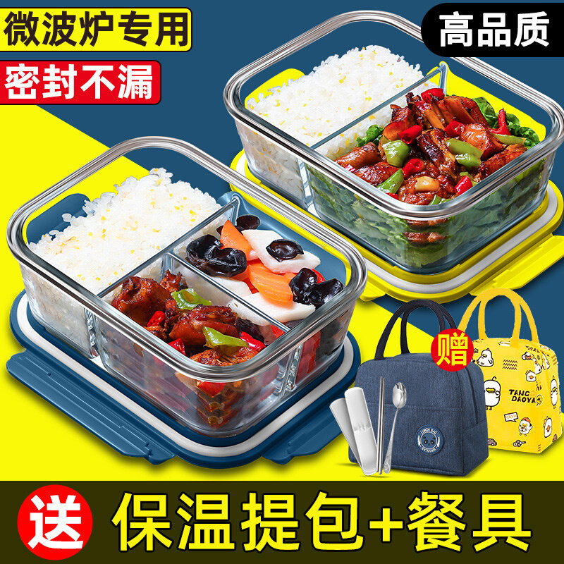 上班族学生专用玻璃饭盒可微波炉加热秋冬保温餐盒带饭便当保鲜盒