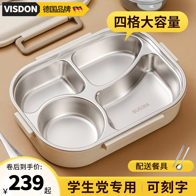 德国316L不锈钢饭盒上班族学生便当盒便携餐盘分格食堂打饭专用盒