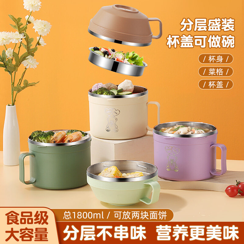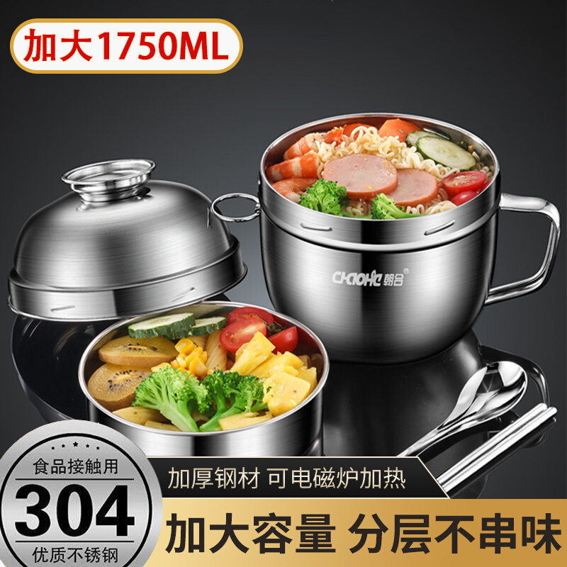泡面碗带盖宿舍用学生个人专用碗筷套装餐具上班族不锈钢打饭饭盒