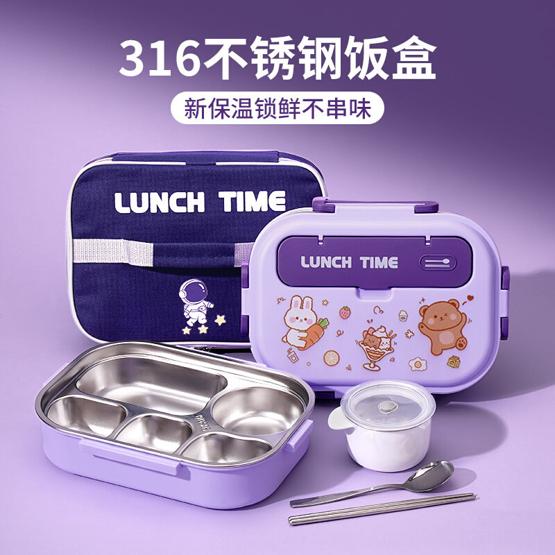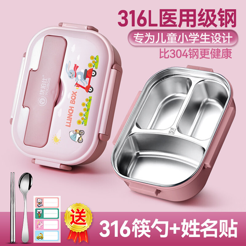 保温饭盒儿童小学生专用分格餐盘316不锈钢便当盒餐盒 微波炉加热