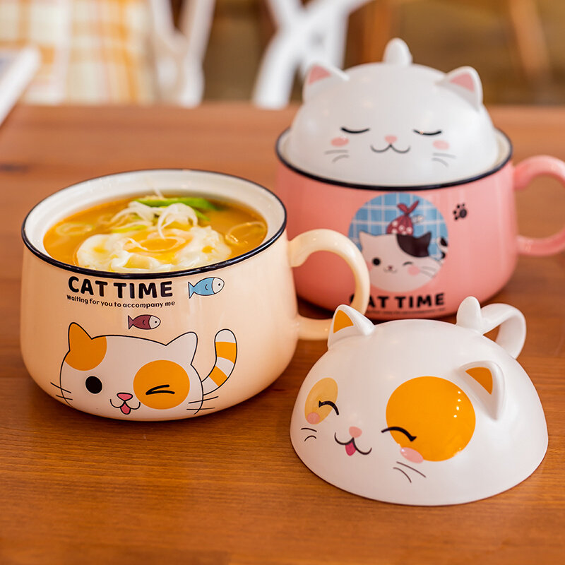 日式泡面碗带盖勺学生宿舍面杯可微波陶瓷汤碗办公室饭盒大容量女