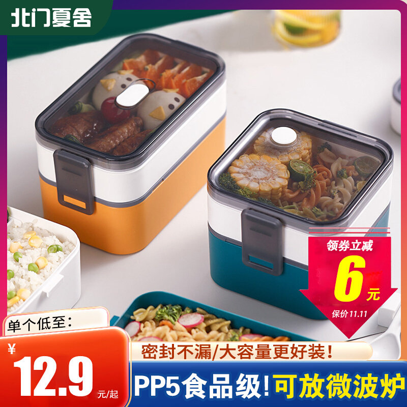 饭盒微波炉加热专用蒸盒上班族便当盒食品级带饭餐盒塑料双层成人
