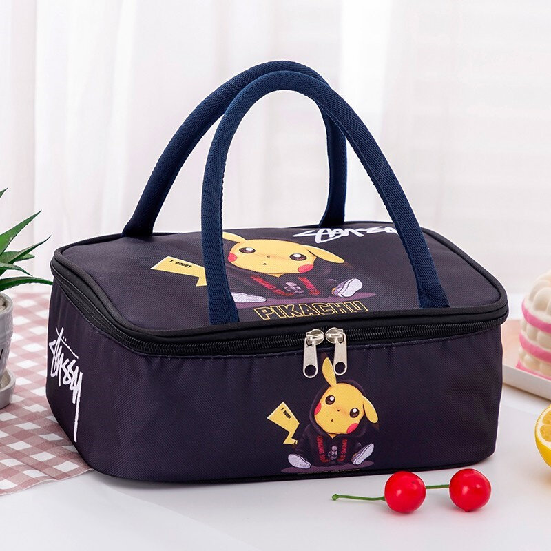 小学生宝可梦扁平式饭盒袋防水儿童神奇宝贝宽底保温袋手提袋男孩