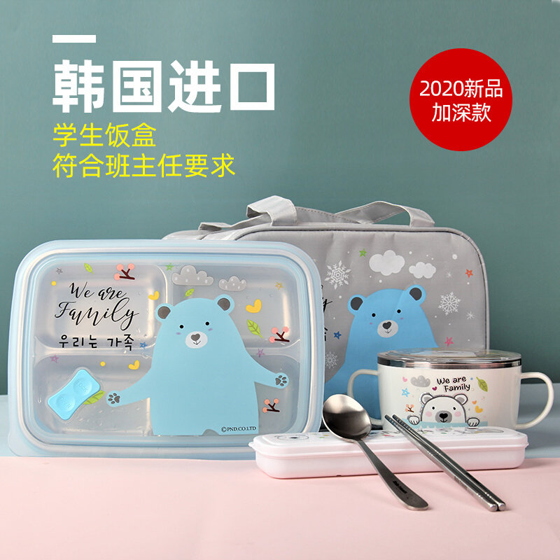 韩国进口小学生饭盒304不锈钢分格餐盘防烫带盖304不锈钢午餐盒