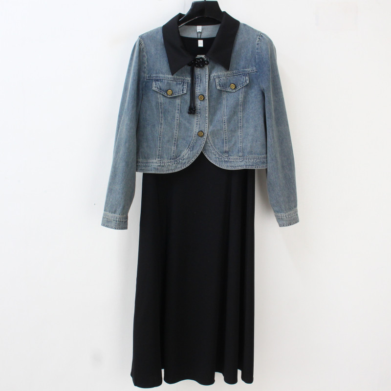 罗曼妮娅2024春季新款套裙女洋气短款牛仔外套+背心裙两件套A1808