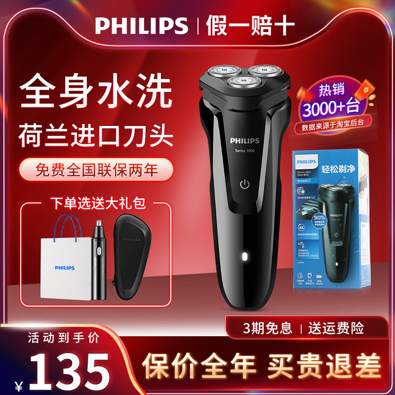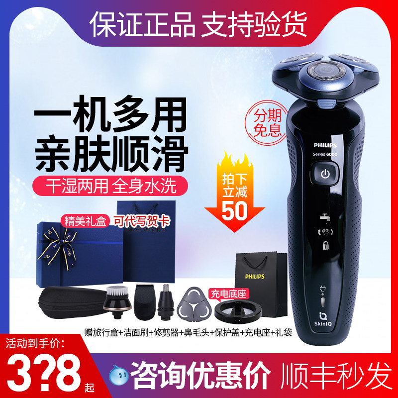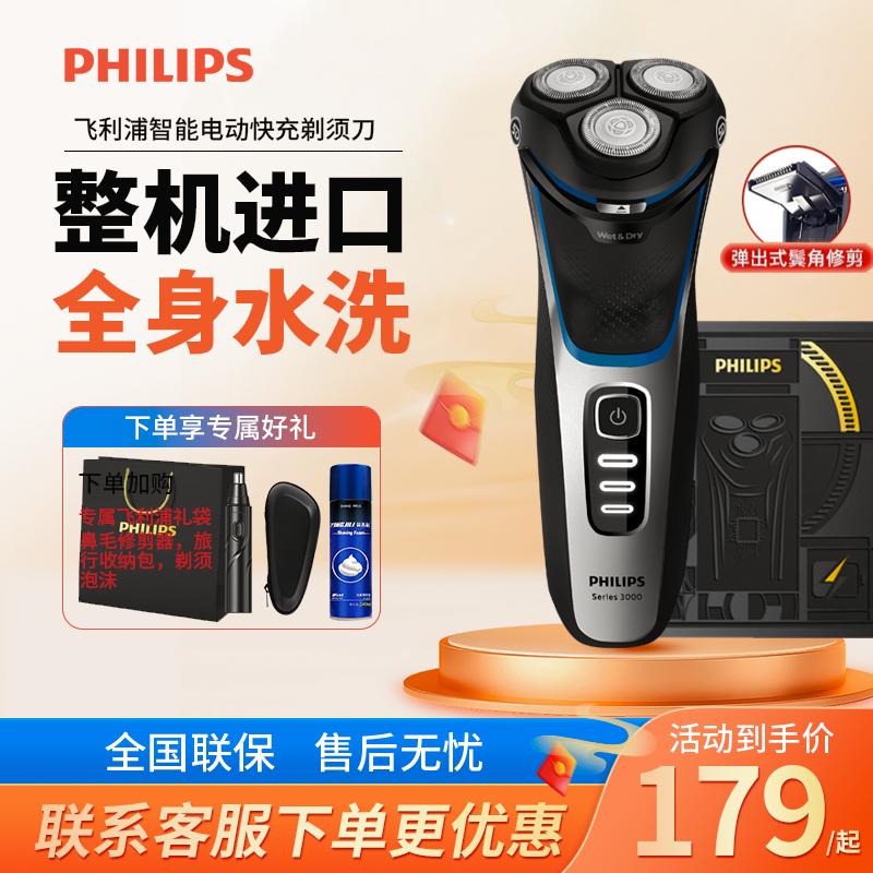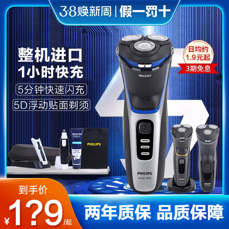 飞利浦剃须刀电动男士刮胡刀充电式胡子胡须刀三刀头全身水洗正品