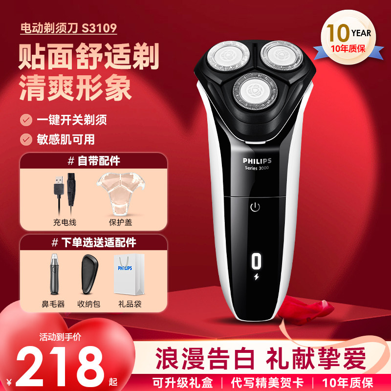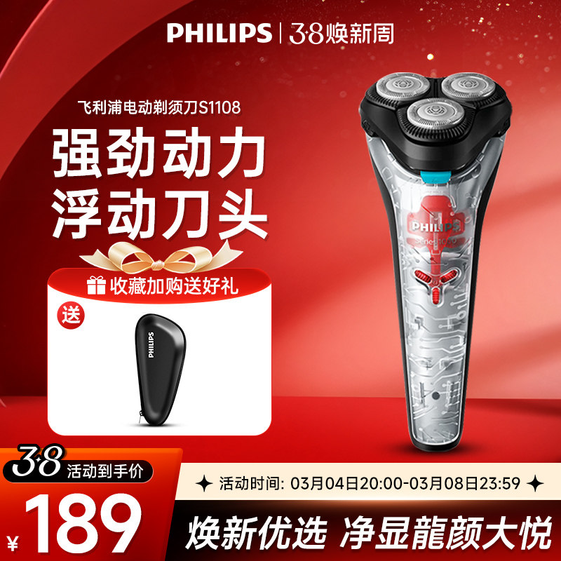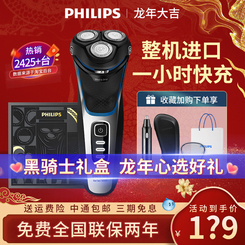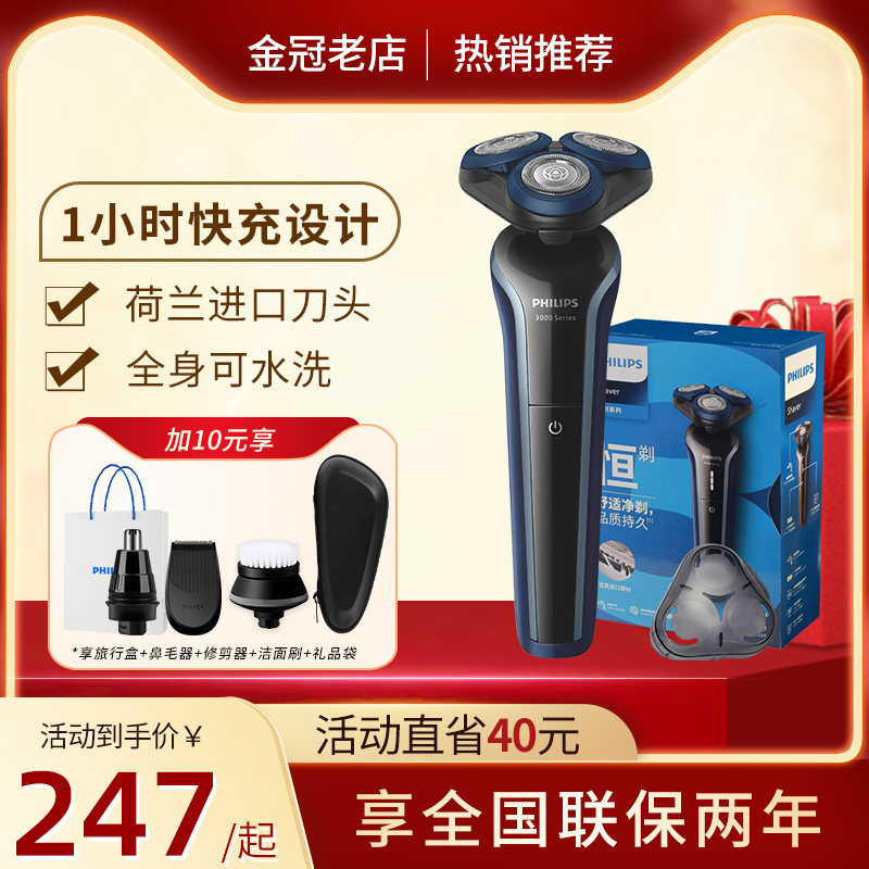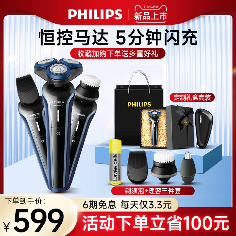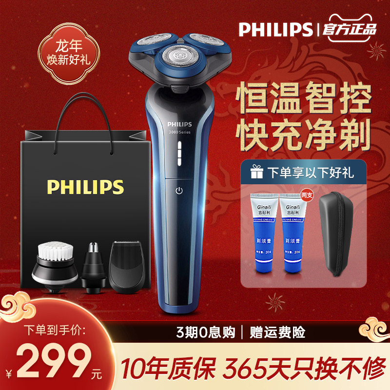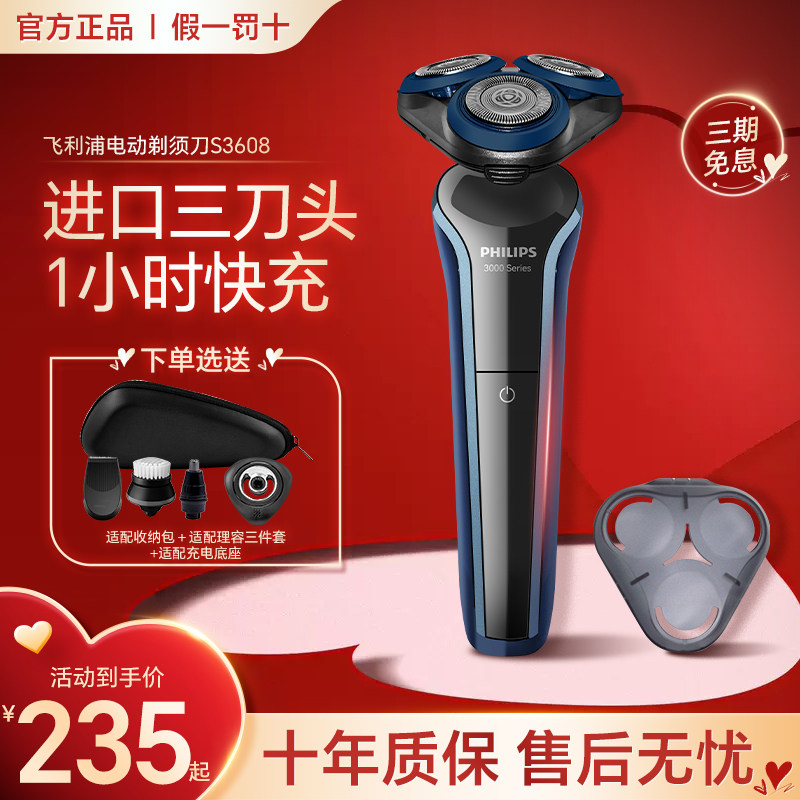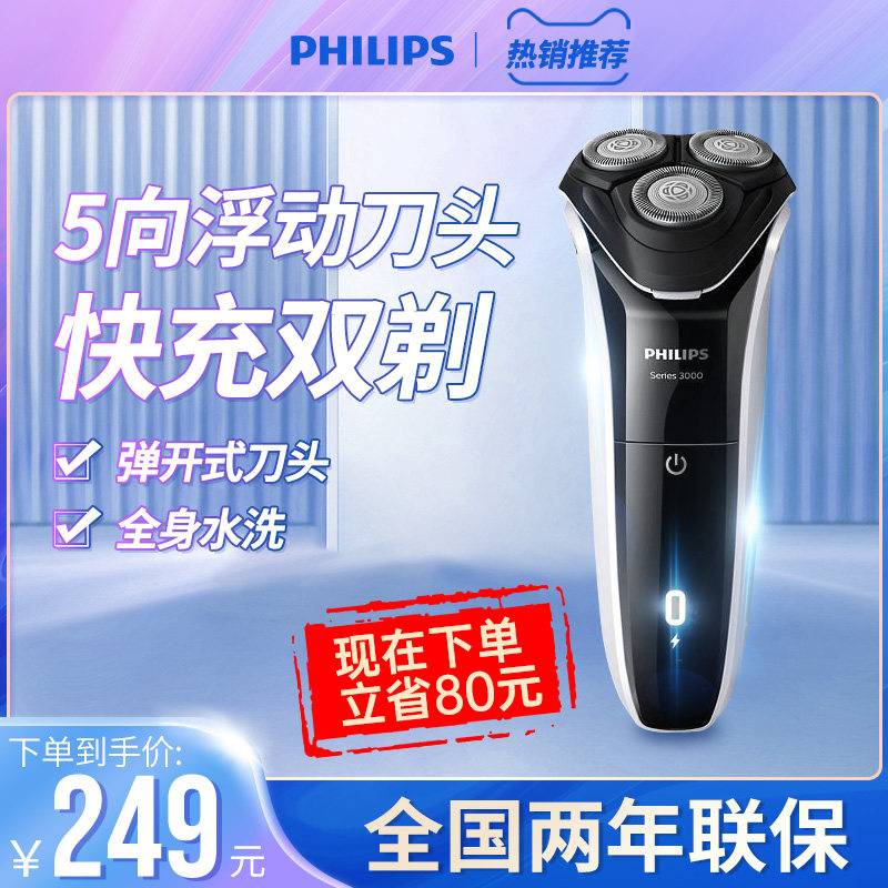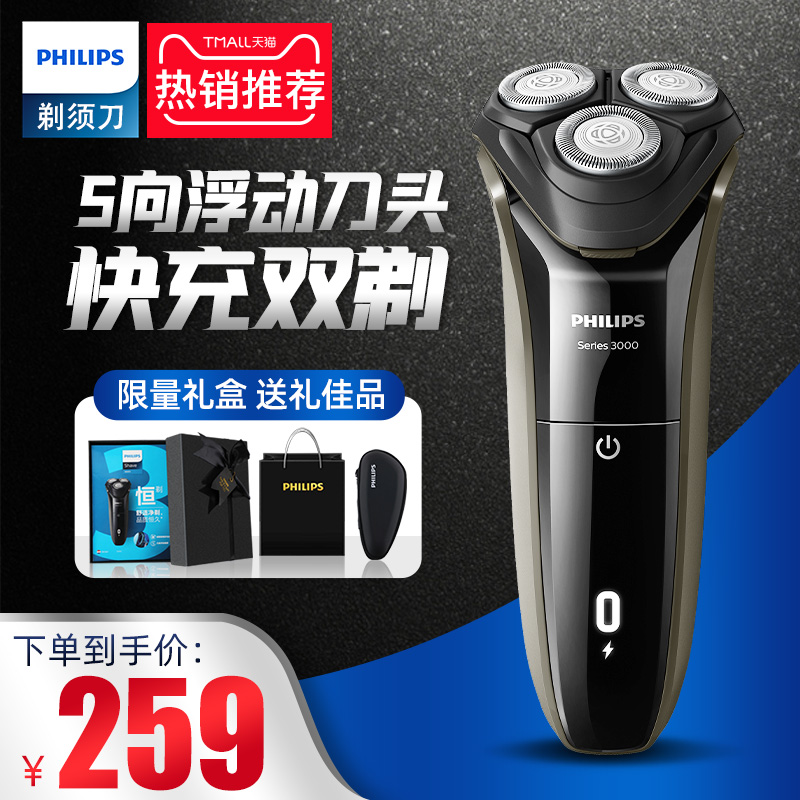 飞利浦男士剃须刀充电式刮胡刀官方旗舰店正品胡须刀送男友S3608