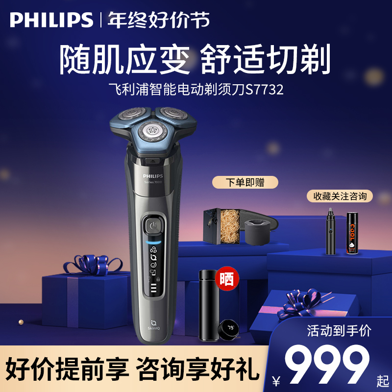 飞利浦剃须刀电动刮胡刀充电式男士胡须刀三刀头S7732锂电池正品