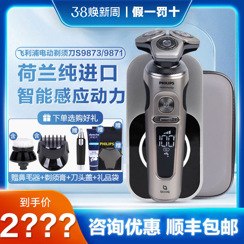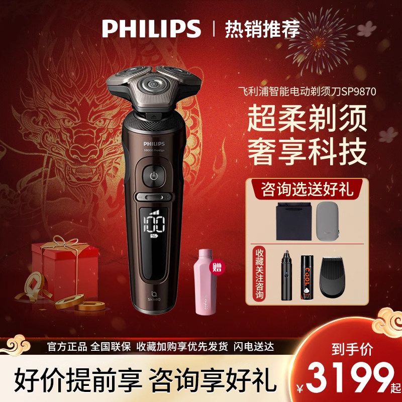 飞利浦剃须刀官方正品男士充电式电动刮胡刀智能须刨礼盒装SP9871