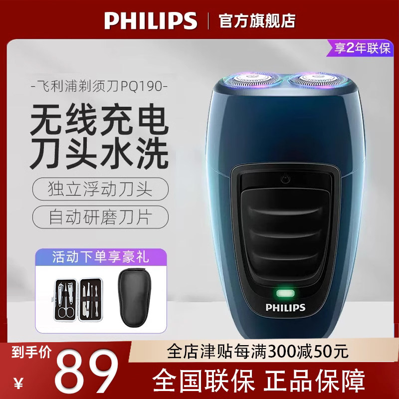 飞利浦剃须刀电动男士刮胡刀便携式充电官方正品进口胡须刀PQ190