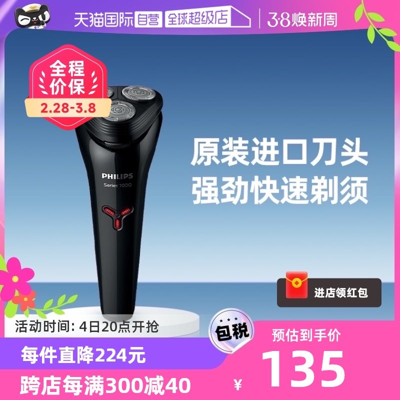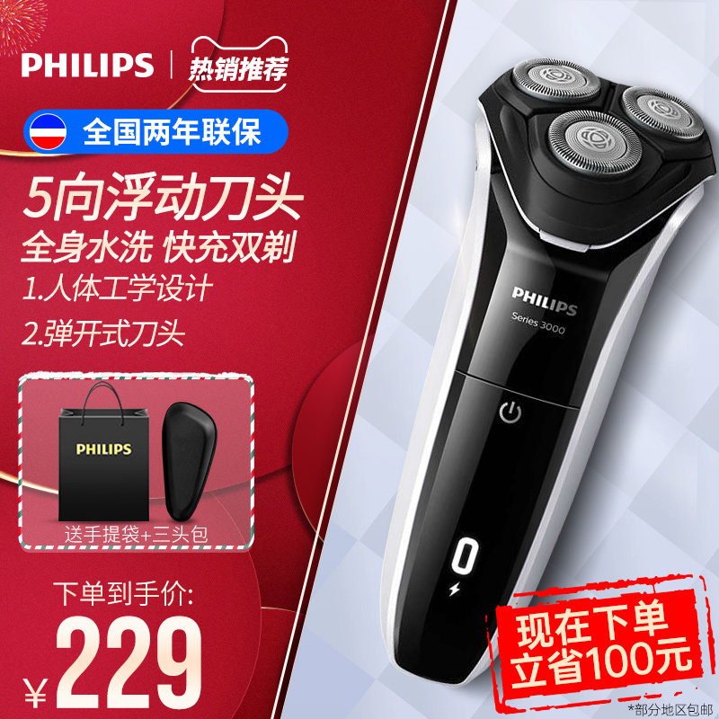 飞利浦电动剃须刀S3206充电式三刀头菲利普水洗S4303男士刮胡刀