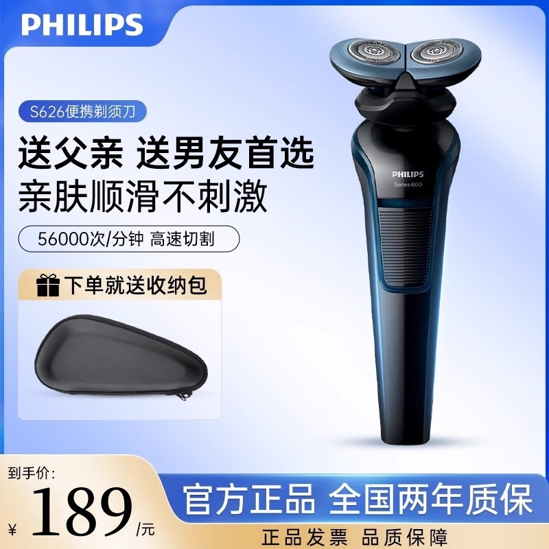 飞利浦电动剃须刀男士充电式刮胡刀全身水洗干湿双剃痘痘肌S626