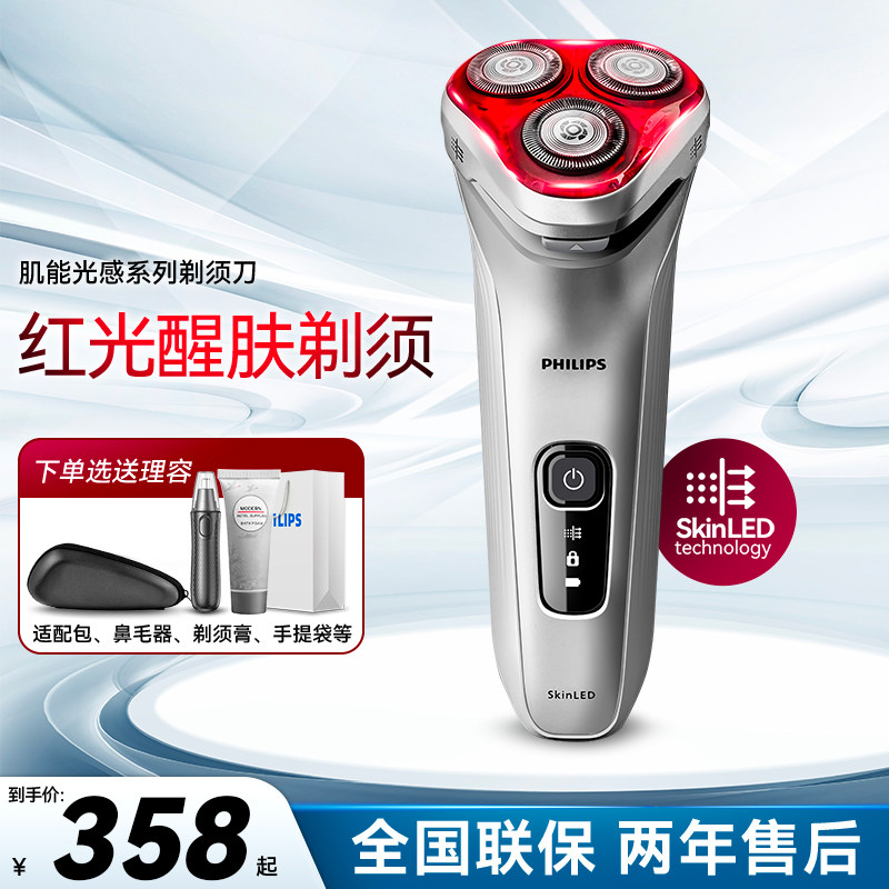 飞利浦电动剃须刀红光智能护肤充电式刮胡刀 男LED4500便携胡须刀