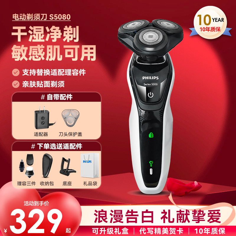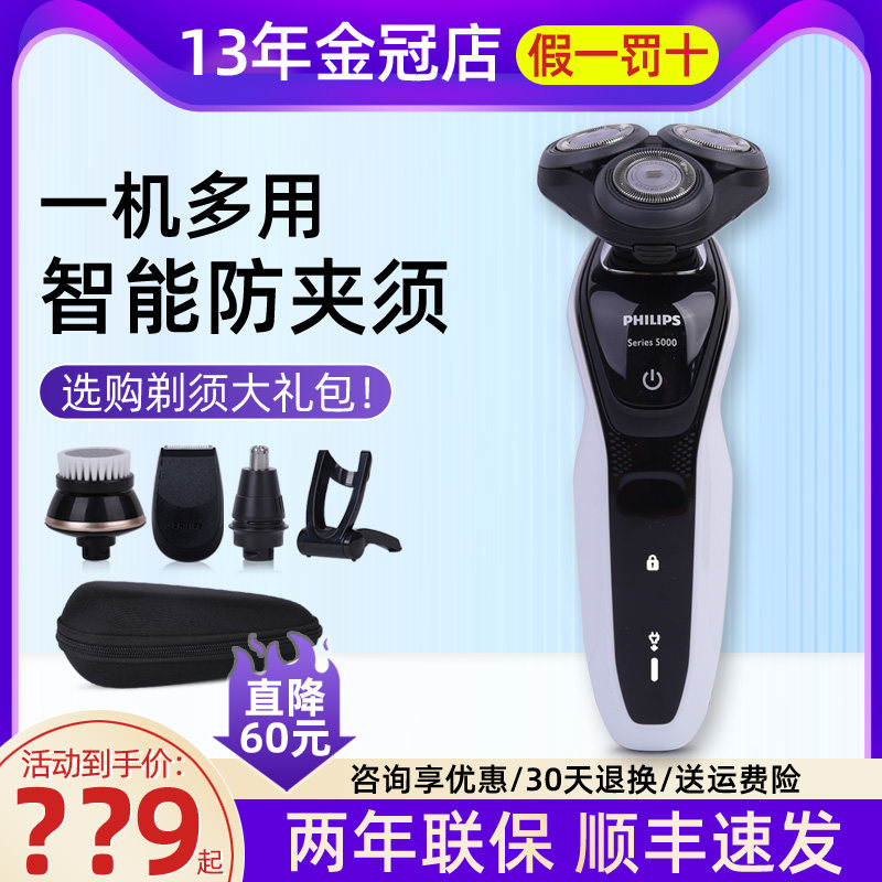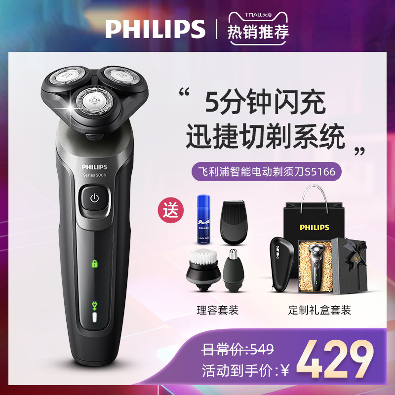 飞利浦电动剃须刀S5080男士充电式新款刮胡刀进口官方正品店S5166