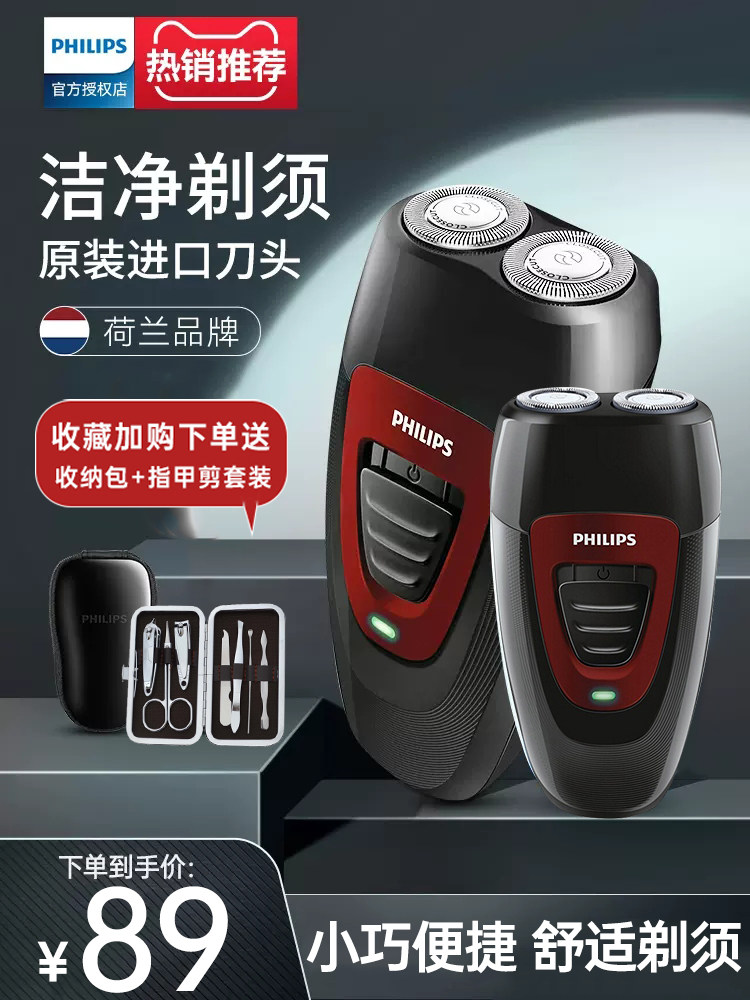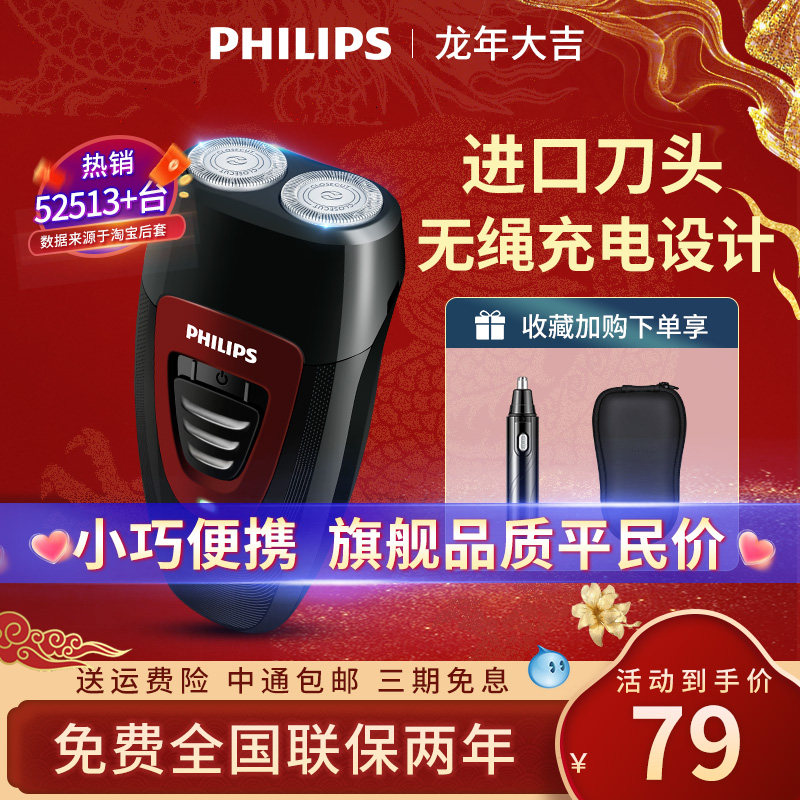飞利浦电动剃须刀官方旗舰店正品双刀头男菲利普充电式胡须刮胡刀