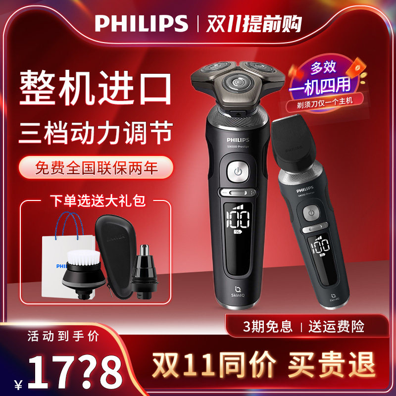 Philips飞利浦进口充电式男士电动剃须刀S9987刮胡刀官方旗舰店