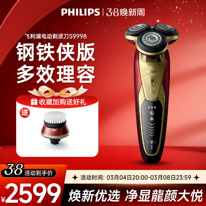 飞利浦漫威英雄剃须刀MVL9998钢铁侠版男士电动充电式刮胡刀