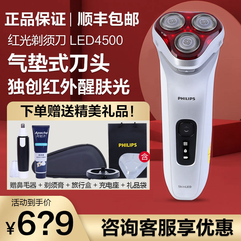 飞利浦电动剃须刀红光智能护肤充电式刮胡刀男LED4500便携胡须刀