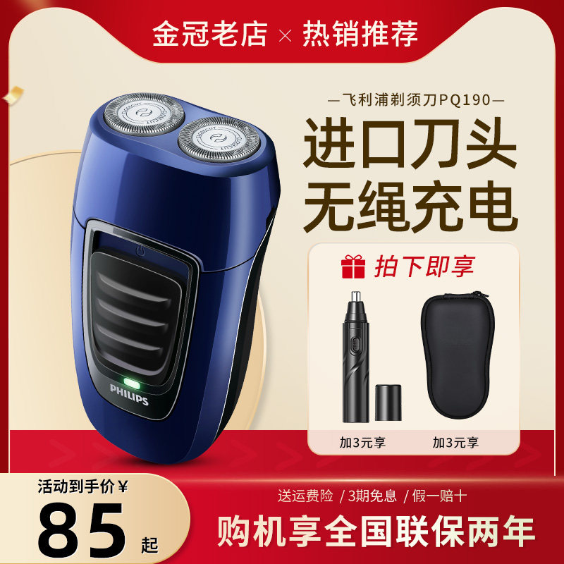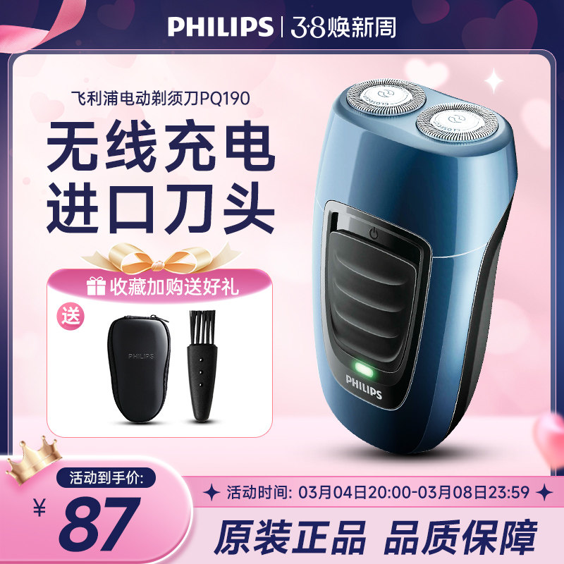 飞利浦新款PQ190男电动剃须刨刮胡子刀PQ182小旅行便携旋转充电式