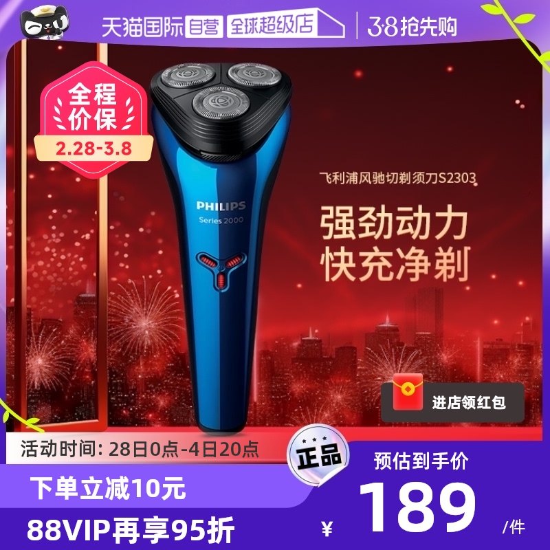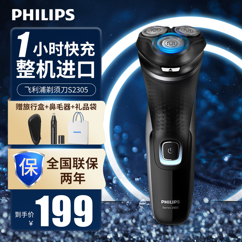 飞利浦电动剃须刀S2305男士充电式刮胡刀进口水洗S3206官方正品店