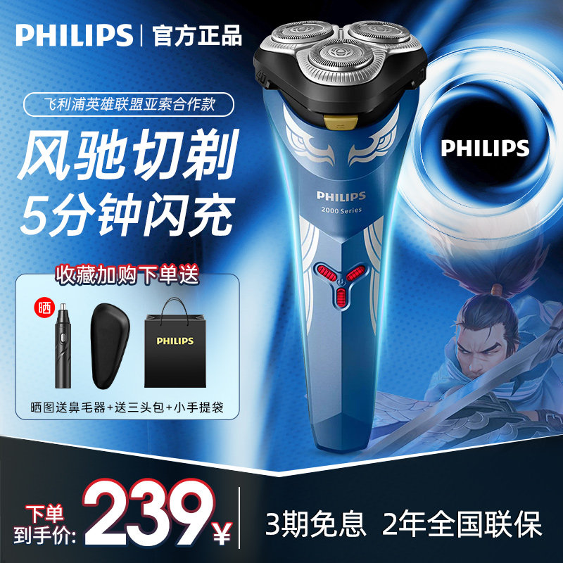 飞利浦剃须刀S2306充电式水洗正品英雄联盟S2318电动刮胡刀S2308