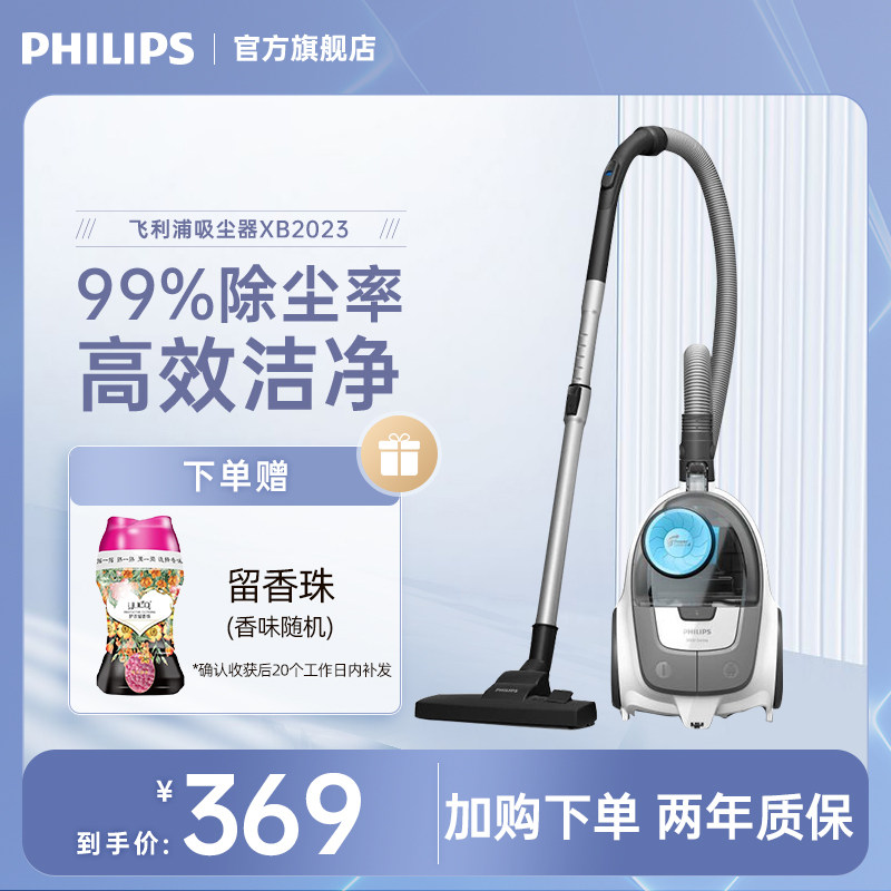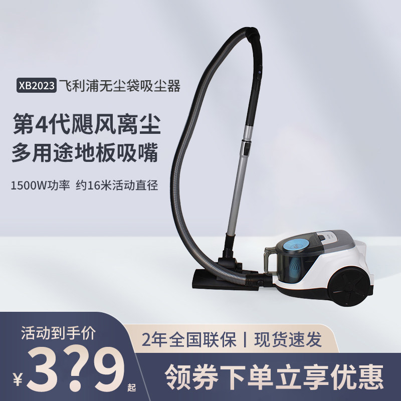 【新品】飞利浦家用大功率无尘袋小型强力大吸力吸尘器XB2023