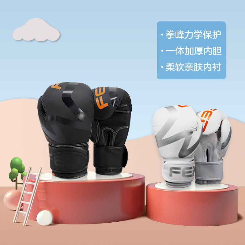 飞尔顿拳击手套成人专业散打训练自由搏击拳套打沙袋手套黑色白色