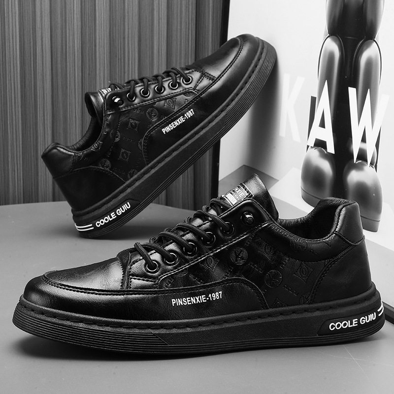 鞋子男春秋季男鞋爆款韩版黑色休闲板鞋男士潮流百搭商务皮鞋男鞋