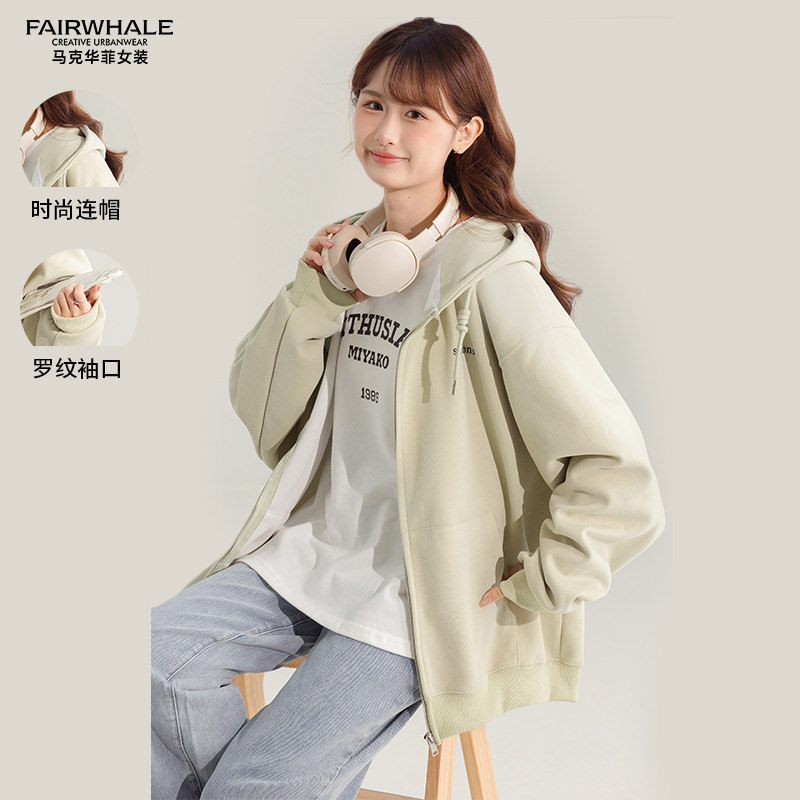 马克华菲2024春季新款时尚运动连帽卫衣外套女休闲舒适上衣潮流