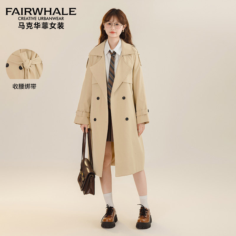 马克华菲卡其色风衣女2024春季新款韩版高级感宽松中长款大衣外套