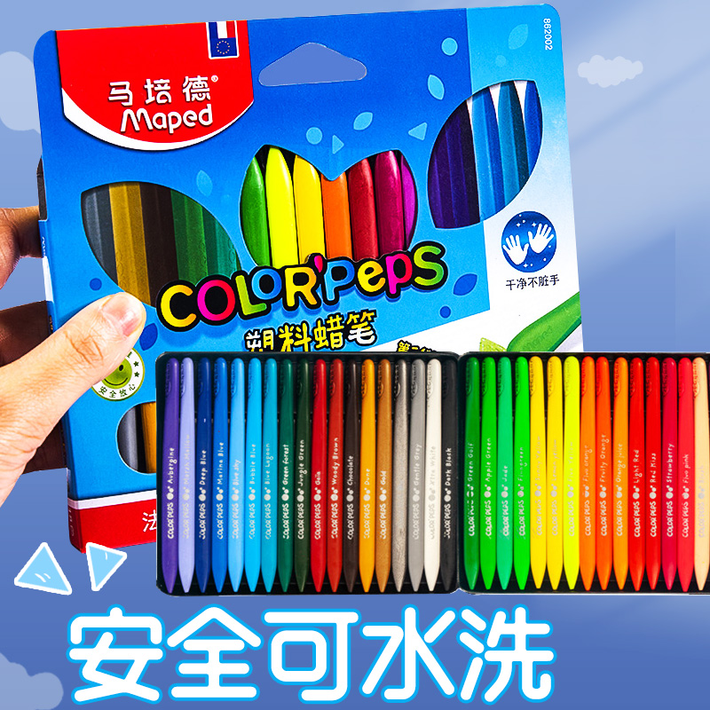 马培德塑料蜡笔24色可水洗油画棒36色幼儿园不脏手三角蜡笔48色儿