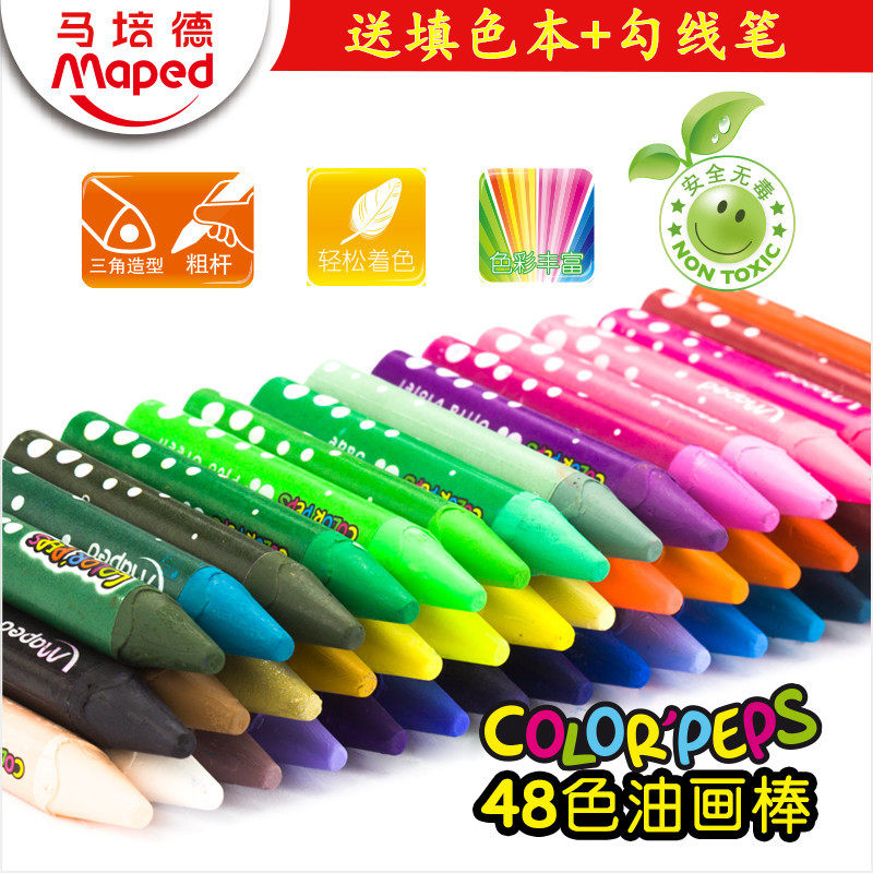 马培德油画棒12色儿童用填色笔24色幼儿园用粗杆蜡笔36色宝宝用涂色画笔48色小学生用涂鸦绘画彩色画画笔套装