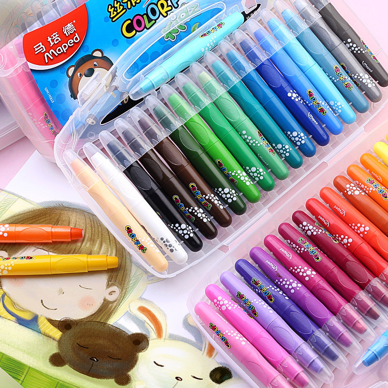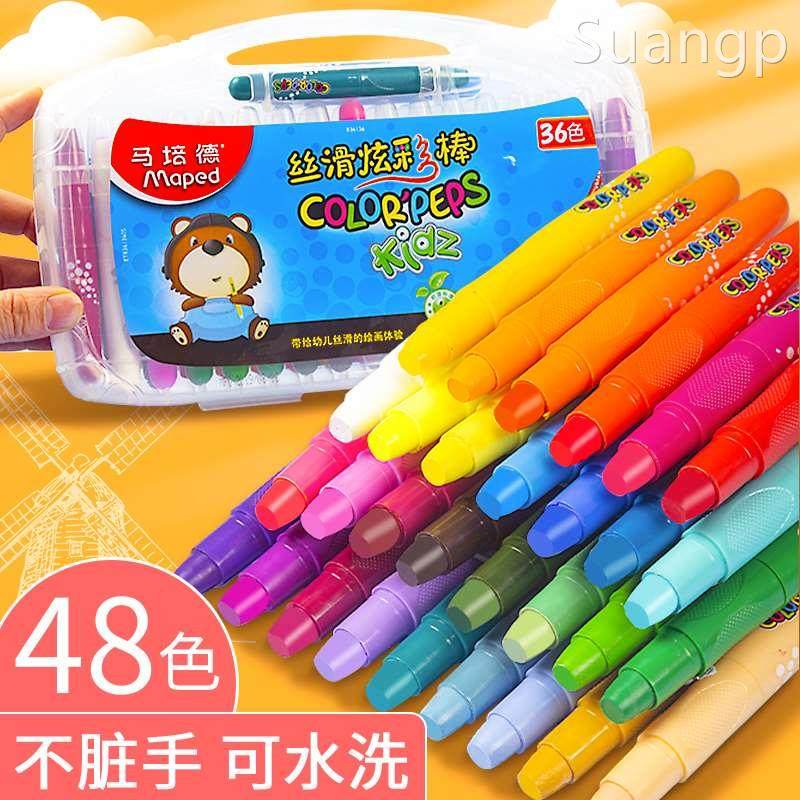 马培德丝滑炫彩棒24色水溶性油画棒儿童36色旋转蜡笔婴幼儿园安全