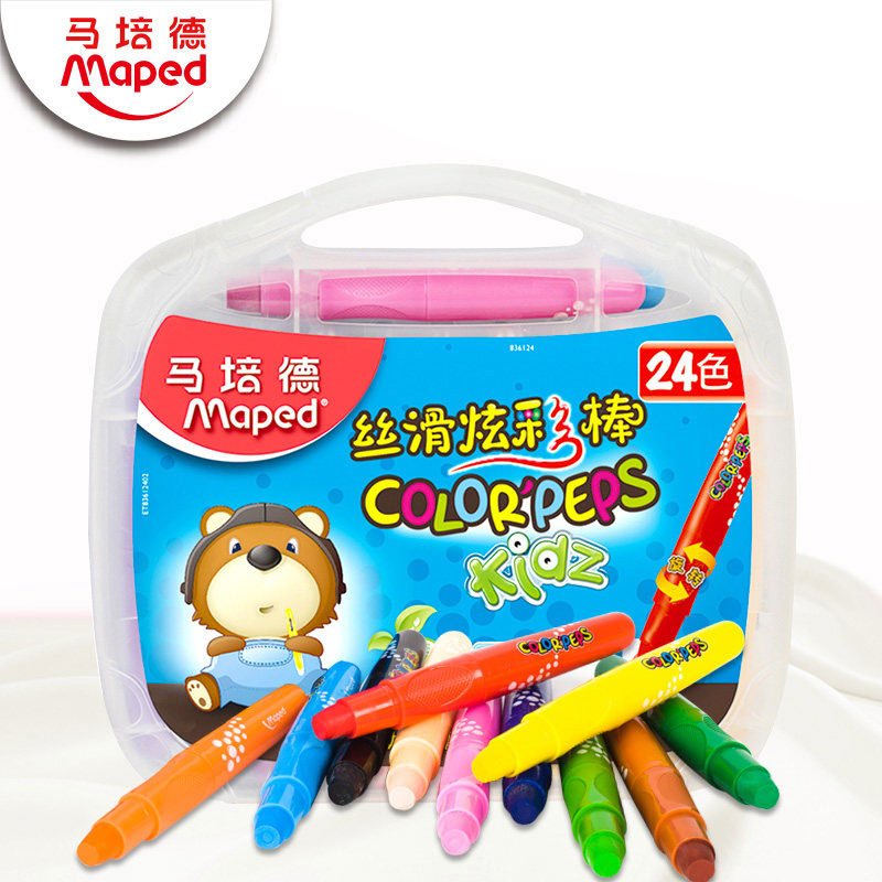 法国马培德塑料蜡笔不脏手油画棒儿童安全无毒24色小学生幼儿园专