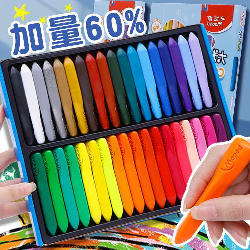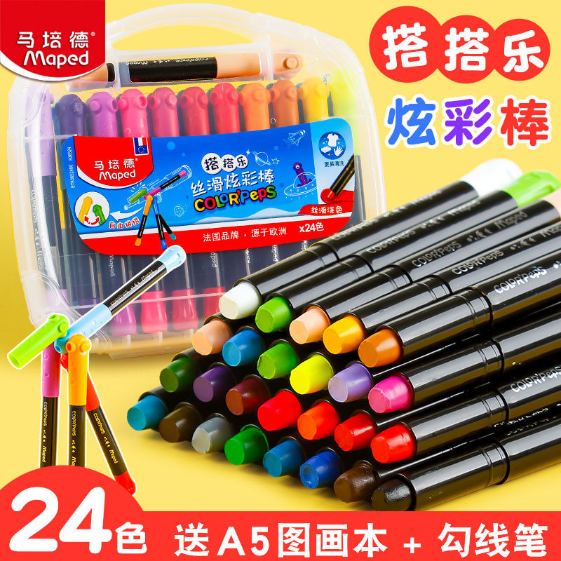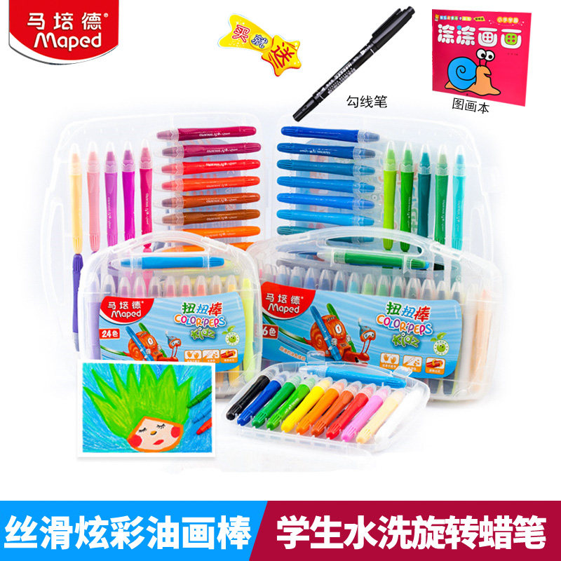 马培德炫彩棒24色小学生36色绘画旋转蜡笔儿童48色水溶性油画棒婴幼儿园小朋友用12色扭扭棒美术彩色画笔套装