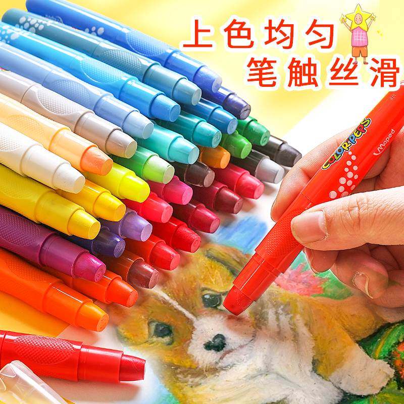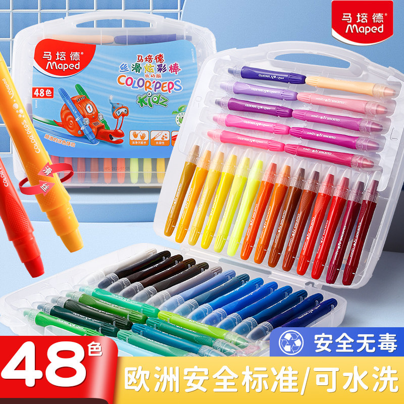 马培德炫彩棒24色小学生36色绘画旋转蜡笔儿童48色水溶性油画棒婴