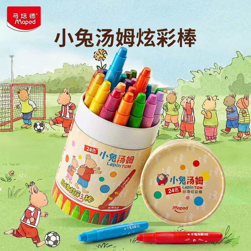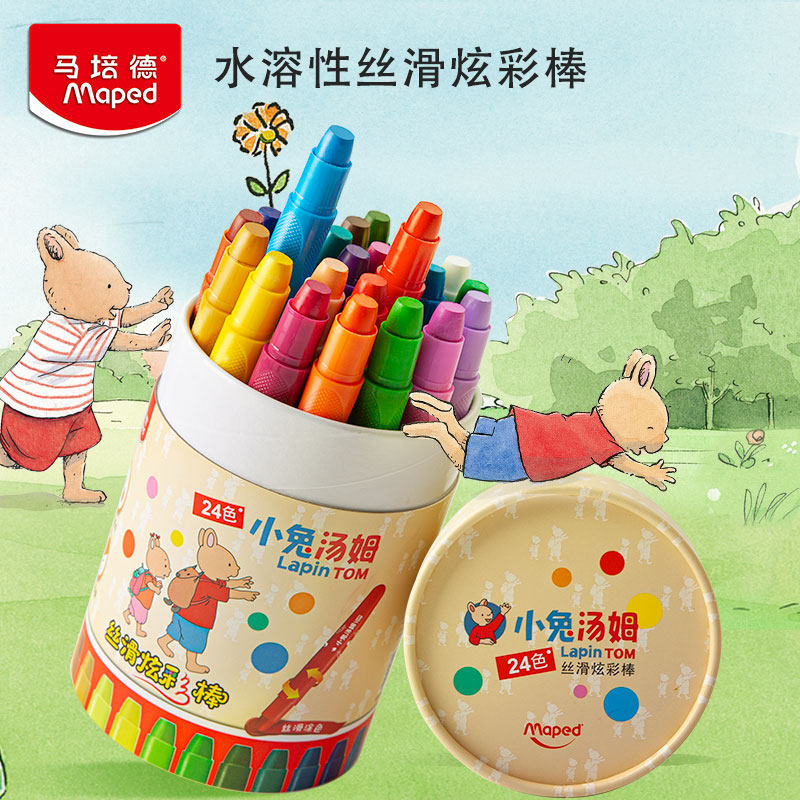法国马培德小兔汤姆炫彩棒油画棒蜡笔套装儿童安全可水洗12色24色水溶性旋转蜡笔幼儿园宝宝彩绘棒正版IP授权