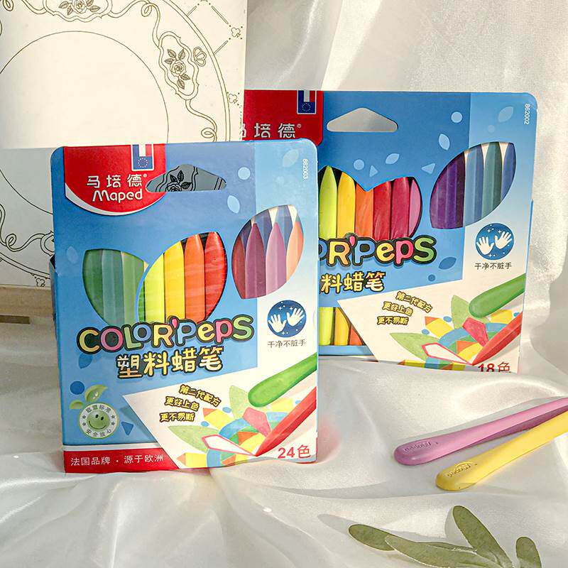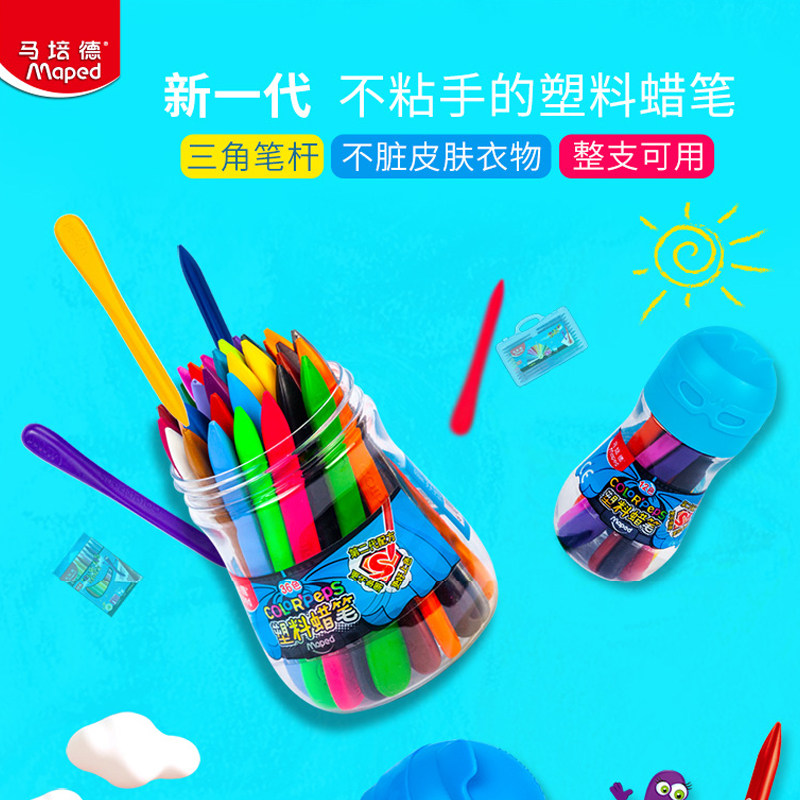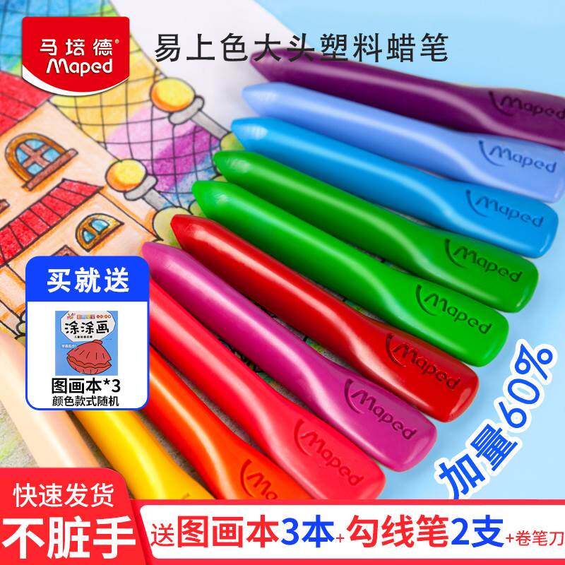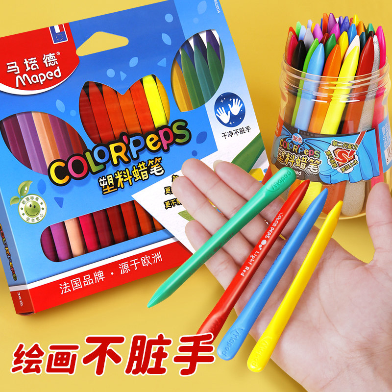 Maped马培德塑料蜡笔儿童不脏手安全无毒可水洗油画棒彩色不沾手