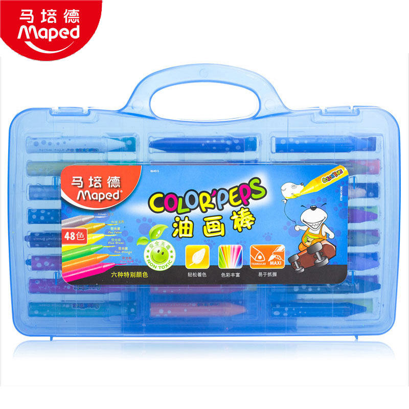 马培德36色油画棒 48色儿童涂鸦美术画笔 塑料手提盒装安全蜡笔