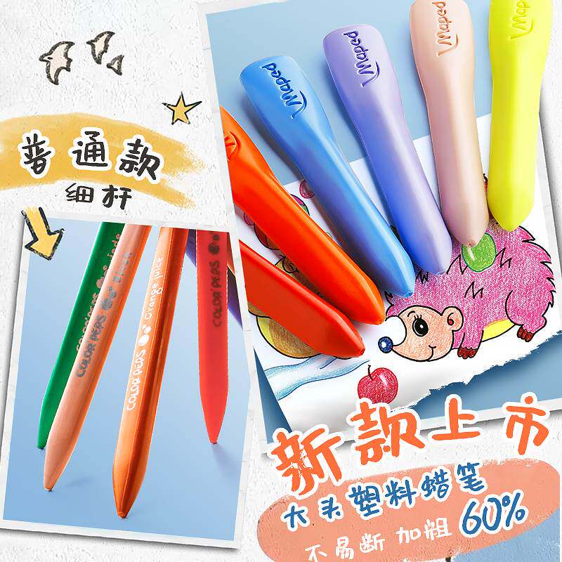 马培德塑料蜡笔不脏手油画棒小学生儿童安全无毒可水洗不沾手三角
