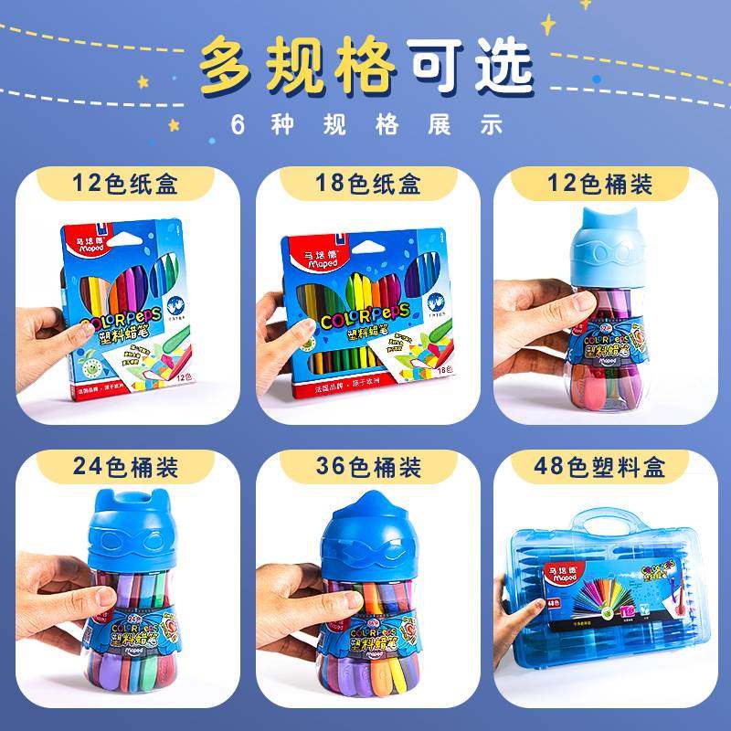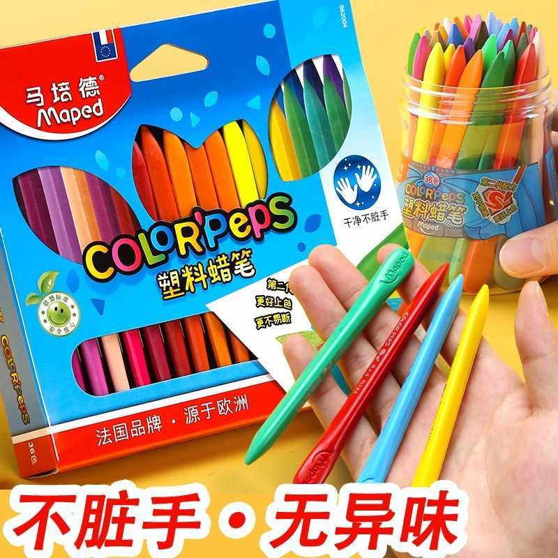 马培德塑料蜡笔 儿童蜡笔幼儿园宝宝可水洗彩笔安全无毒彩色画笔24色36色48色彩绘棒重彩套装彩绘涂色彩笔棒