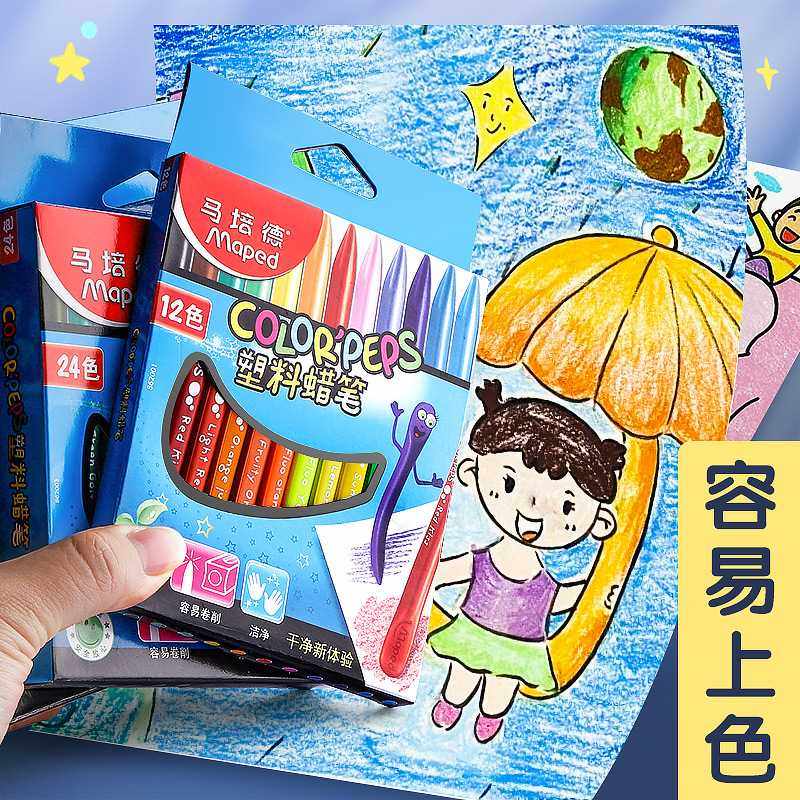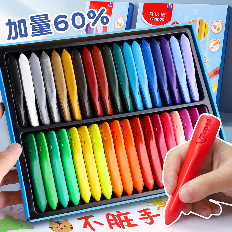 马培德塑料蜡笔不脏手24色小学生儿童安全无毒可水洗油画棒不粘手